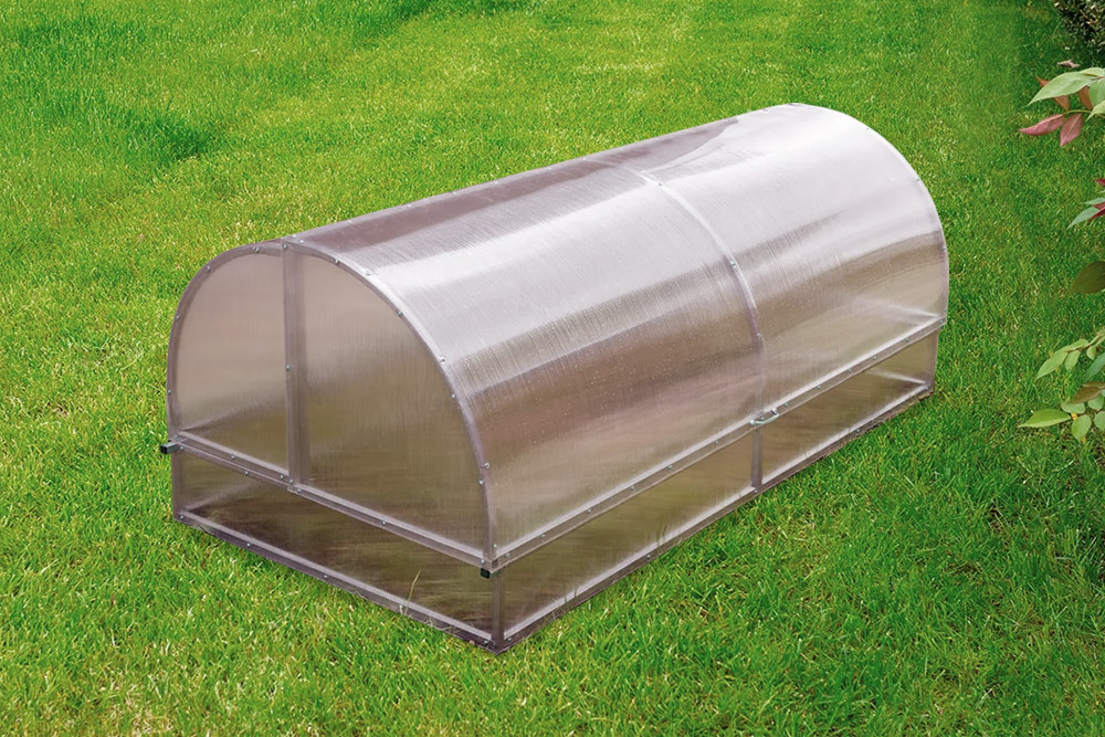 Каркас из оцинкованной снаружи и внутри квадратной трубы 18 мм не подвергается коррозии. Боковые створки крыши парника удобно открываются без каких-либо усилий. Если открыть обе секции (поменять местами), в парнике будет осуществляться правильное проветривание, благоприятное для роста культур.